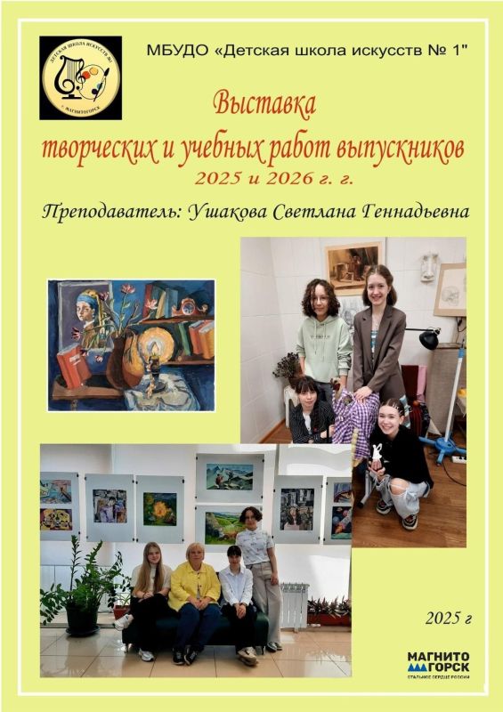 В выставочном зале Магнитогорского концертного объединения открылась выставка художественных работ талантливых выпускников художественного отделения Детской школы искусств №1 Кустубаевой Вероники, Бровкиной Виктории, Михайловой...