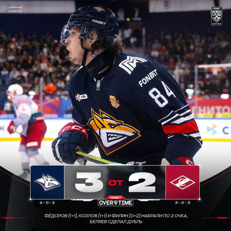 Московский «Спартак» проиграл магнитогорскому «Металлургу» со счетом 2:3 в овертайме в гостевом матче регулярного чемпионата «Фонбет» — КХЛ.В составе победителей шайбы забросили Михаил Федоров (33-я минута), Андрей Козлов...