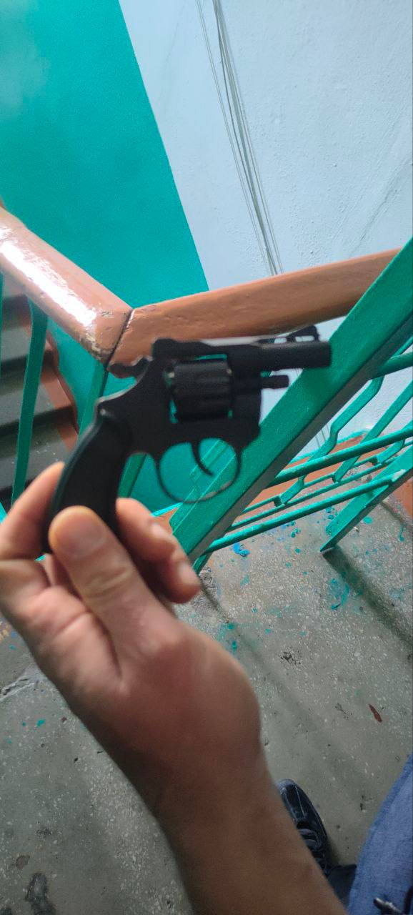 Сотрудники органов внутренних дел выяснили, что данный игрушечный пистолет является пистонным. Для создания звука выстрела и эффекта дыма используются бумажные гильзы с порохом, какой либо опасности не представляет.