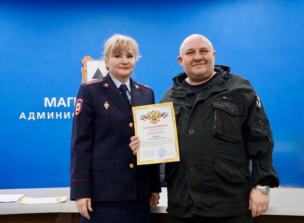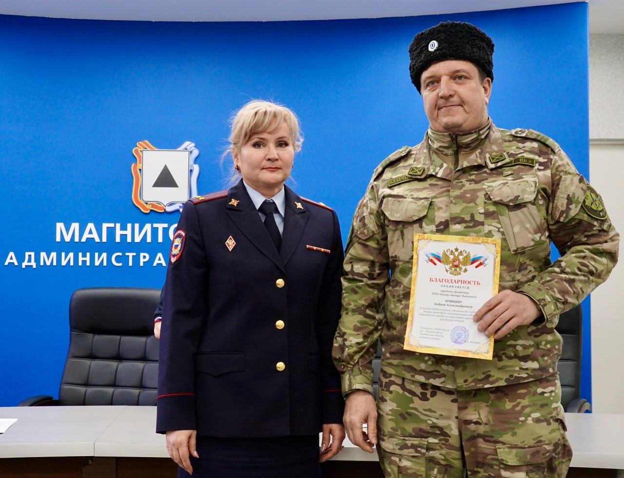 В завершении своего выступления подполковник полиции поблагодарила всех присутствующих за вклад в охрану порядка на территории города Магнитогорска и вручила благодарственные письма.