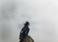 Каким-то образом она умудрилась забраться на каменный забор между домами, ловко прогулялась по нему. Однако, когда человек спугнул ее, поспешила скрыться.
