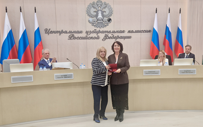 Секретарь избирательной комиссии Челябинской области Наталия Гавриш удостоена высшей награды избирательной системы страны — почетного звания «Заслуженный работник избирательной системы Российской Федерации».