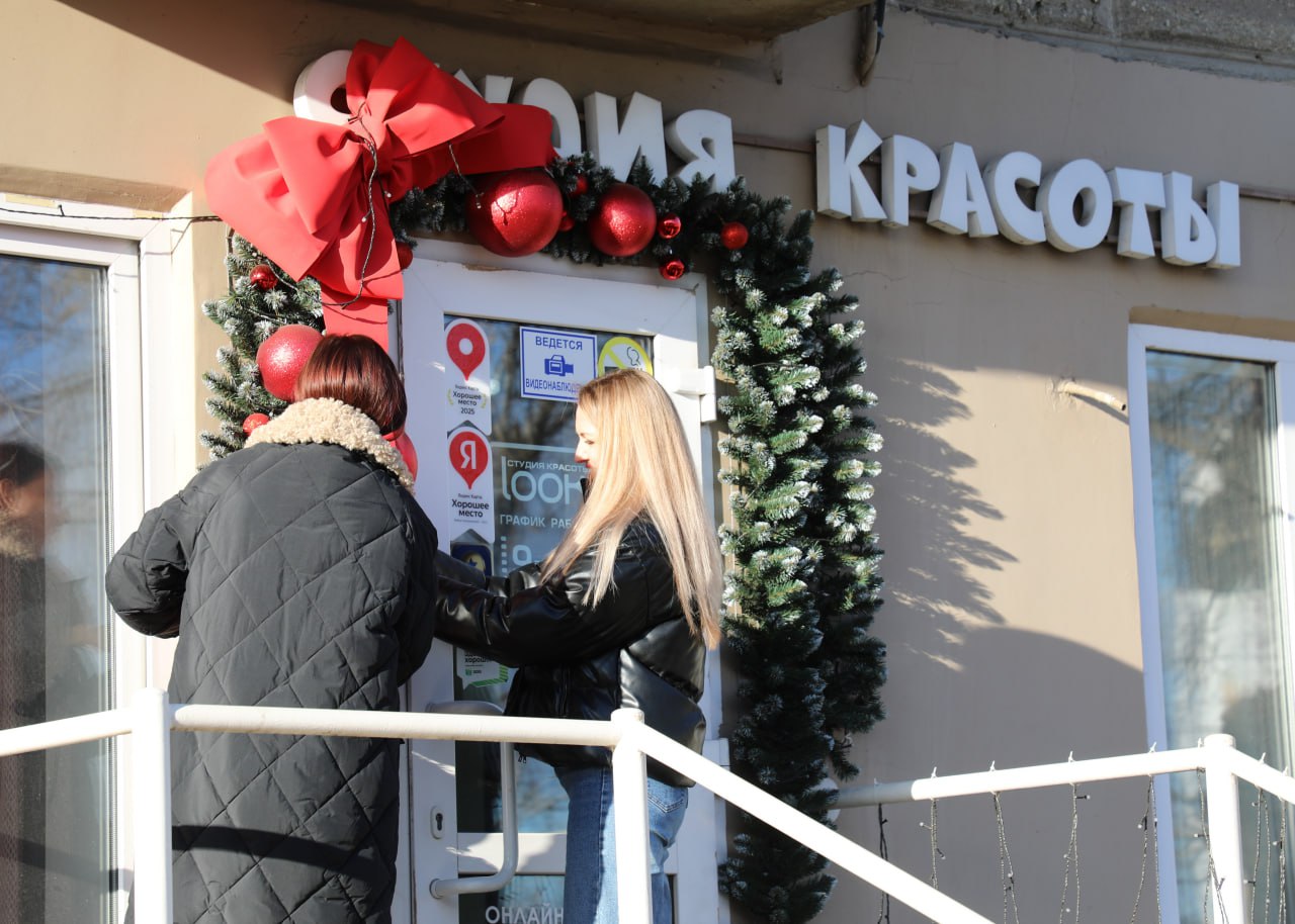 Предприниматель Надежда Никитина уже нарядила крыльцо салона. Украшать часть фасада в преддверии Нового года для ее коллектива стало уже традицией.