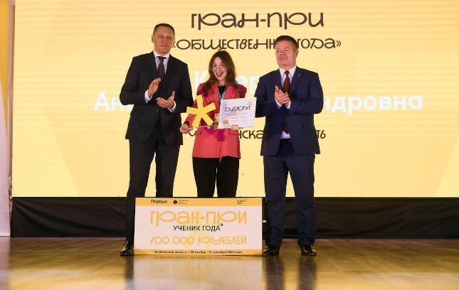 В Магнитогорске завершился финал V Всероссийского конкурса «Ученик года». Мероприятие объединило 150 лучших школьников из 45 регионов России. Школьница из 11-го лицея Челябинска Анастасия Кучеренко завоевала Гран-при финала всероссийского конкурса «Ученик года» в номинации «Общественник года». Три дня интенсивных испытаний: эссе, самопрезентации, деловые игры и экспертные интервью. И вот результат.
