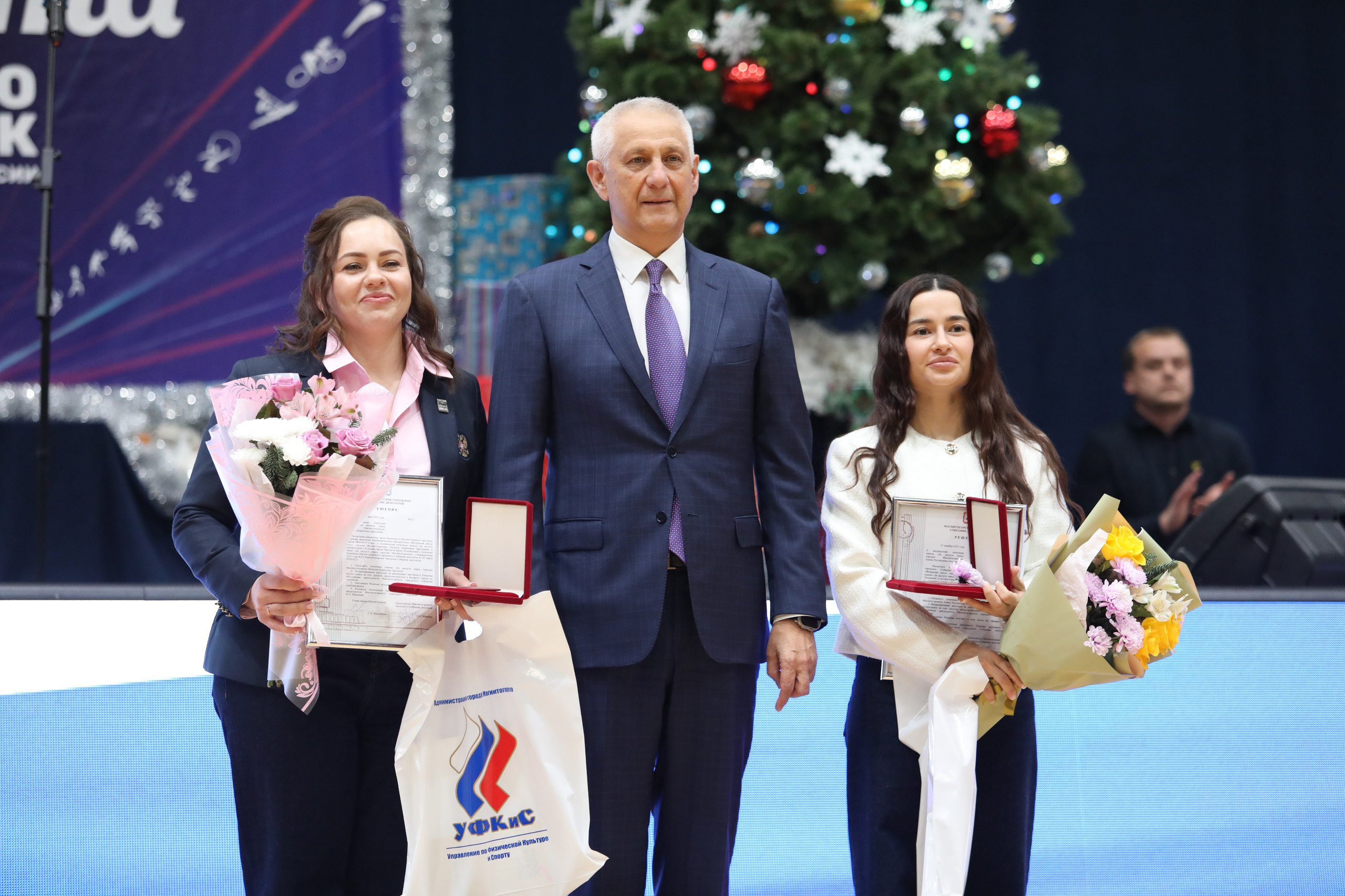 После вступительной речи градоначальник приступил к церемонии награждения. Из рук главы города два почетных знака «За заслуги перед городом Магнитогорском» получили дзюдоистки, чемпионки Сурдлимпийских игр Алина Поздеева и Наталья Дроздова. Также Сергей Николаевич вручил спортсменам удостоверения и знаки «Мастер спорта России» и «Мастер спорта международного класса». Звания получили победители и призеры чемпионатов России по плаванию, академической гребле, скалолазанию, парусному спорту, спортивной акробатике, легкой атлетике, пауэрлифтингу и альпинизму. Также глава города вручил Почетные грамоты Министерства спорта Челябинской области и Благодарственные письма главы города тренерам.
