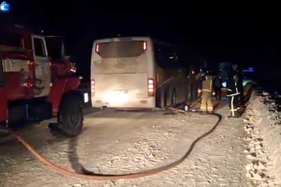 На трассу приехали сотрудники экстренных служб. Они помогли водителю отогрет автобус.