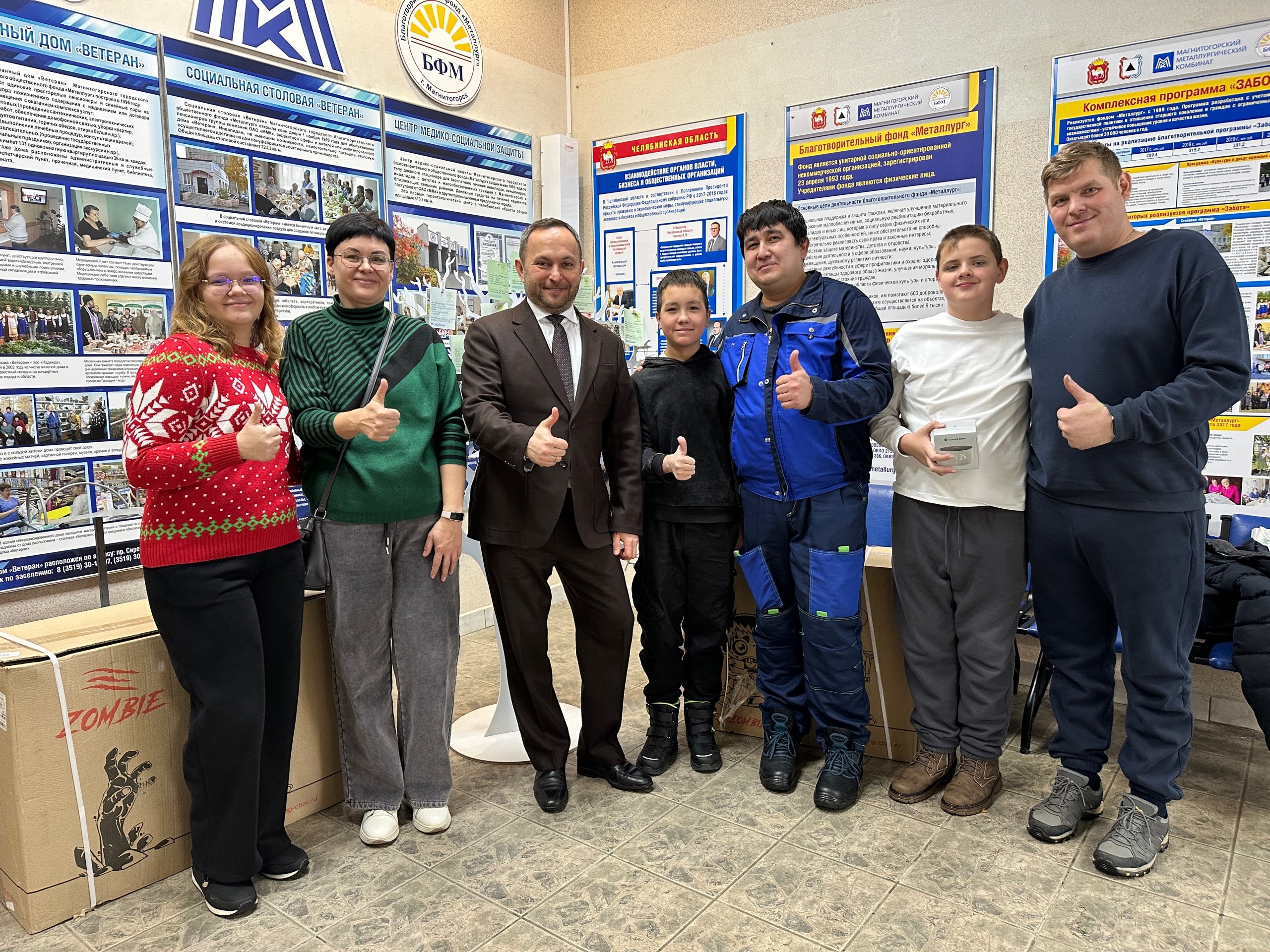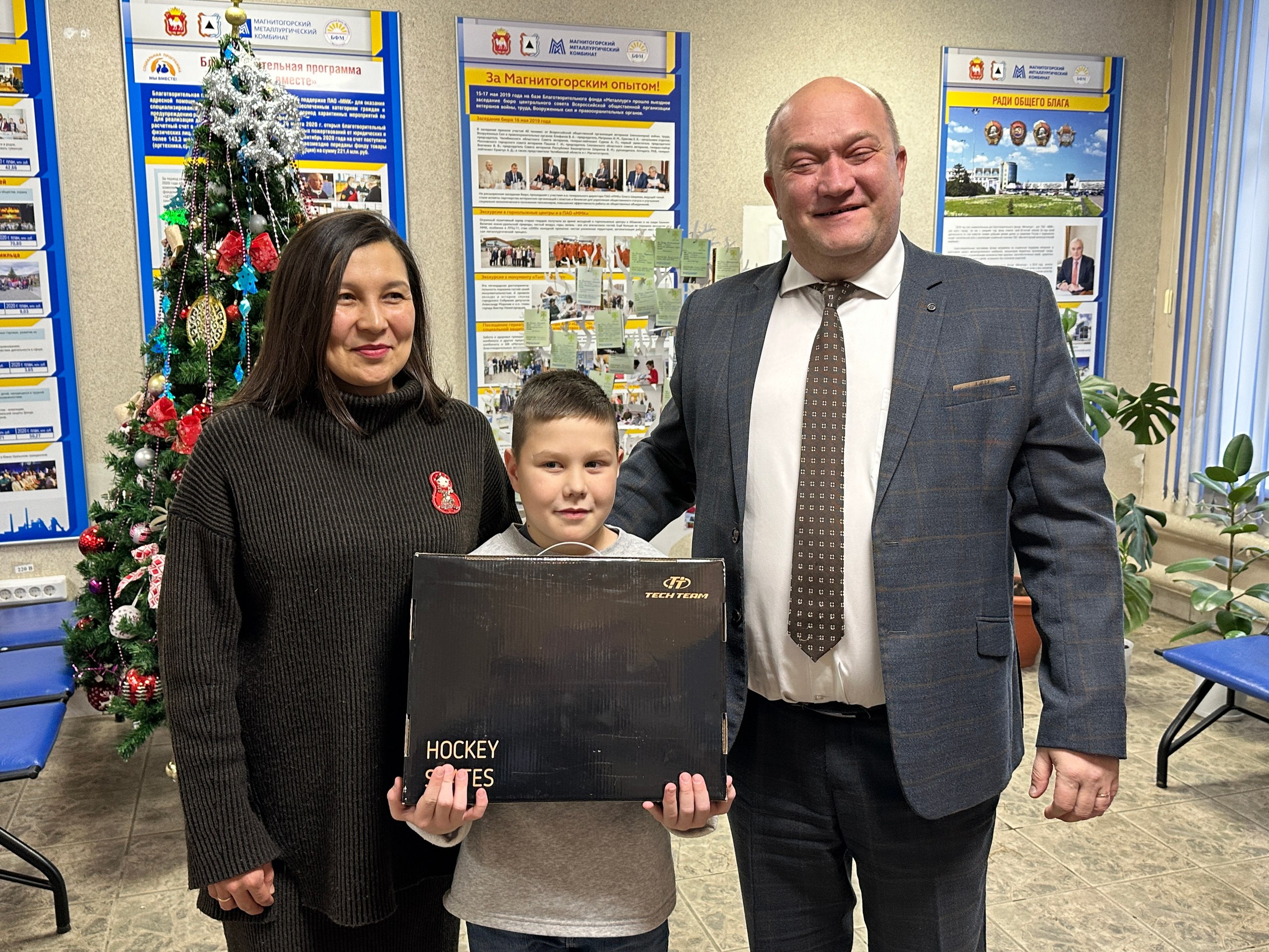 Традиционную акцию «Дерево добра» Благотворительного фонда «Металлург» поддержали депутаты Александр Мухин , вручивший хоккейные коньки Роману Костомахе и умную колонку Никите Степанову, Сергей Дубовский, подаривший батут Кириллу Плаксину, и Александр Довженок , исполнивший желания Азама Абдулбарова и Виктории Сойновой (компьютерные кресла), Владимира Черниенко (умная колонка) и Софии Мухамедьяновой (планшет).