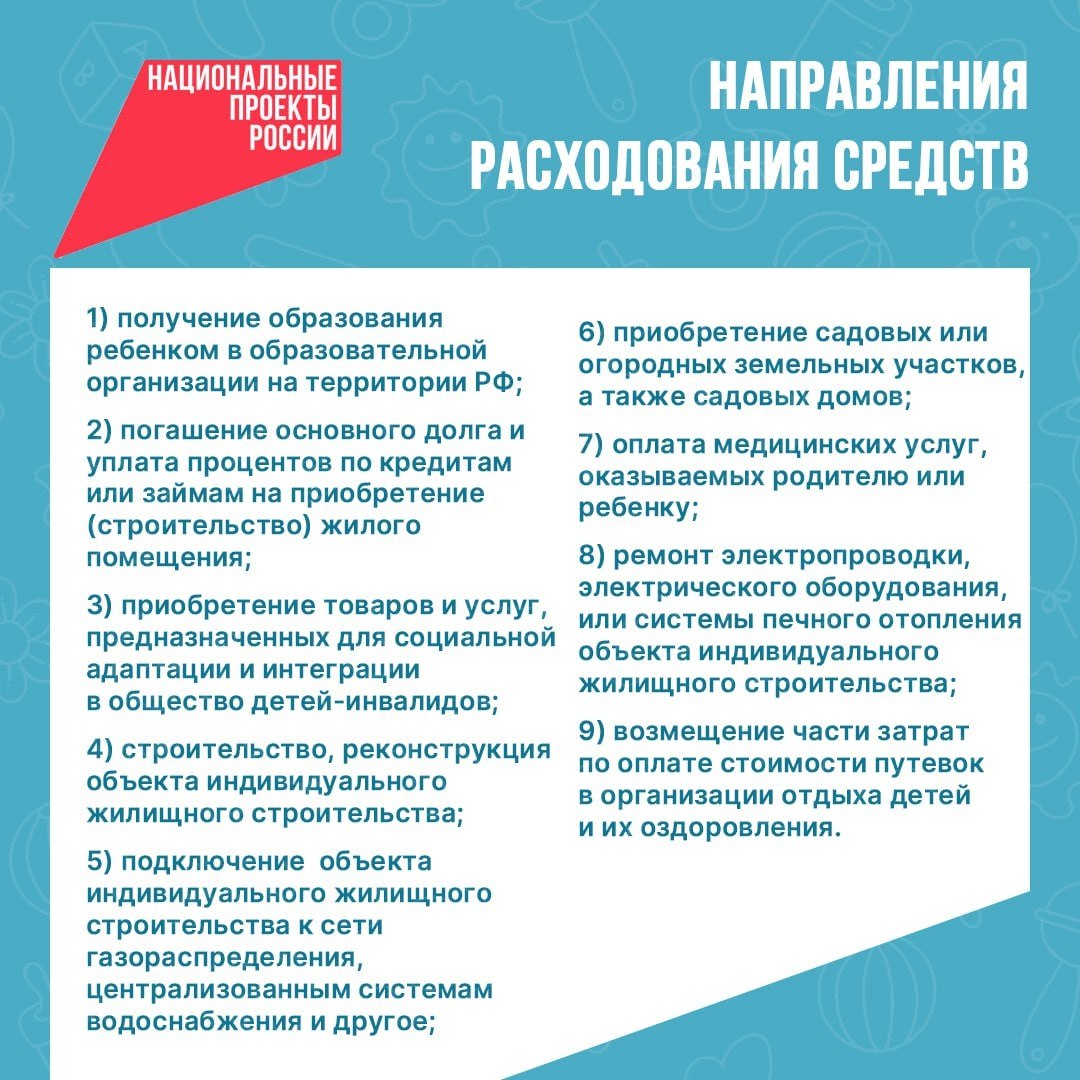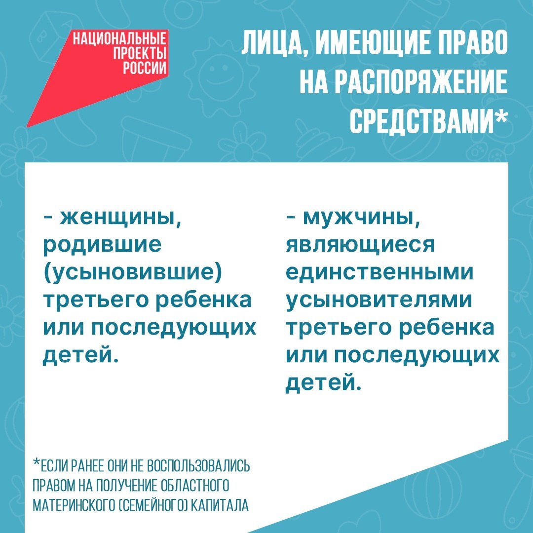 Всего предусмотрено 9 направлений, по которым могут использоваться средства областного материнского капитала, среди которых: