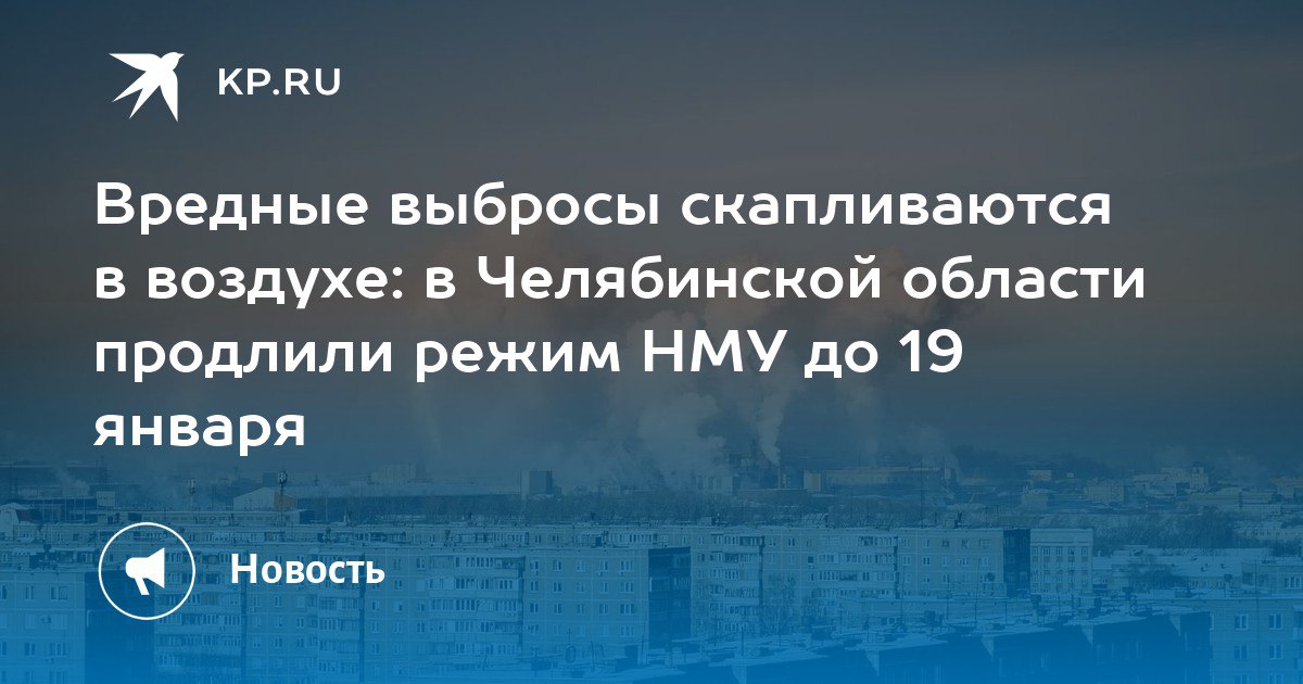 В Сатке и Карабаше режим продлится до 12:00 18 января, в Челябинске и Коркино — до 19:00 19 января, а в Магнитогорске, Аше и Златоусте НМУ будет действовать с 19:00 16 января до 12:00 18 января. Местные предприятия должны снизить производительность на 15-20%.