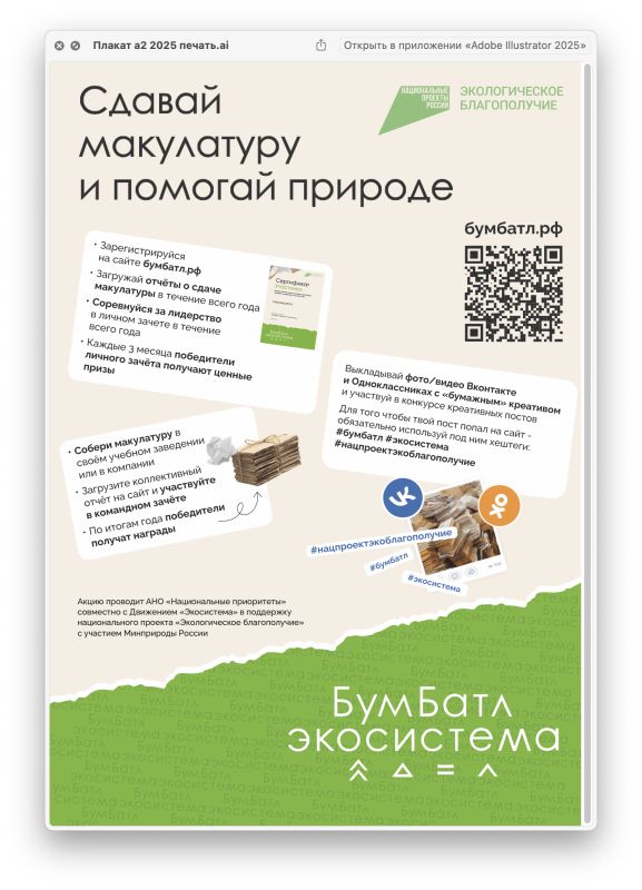 До 30 ноября 2025 года проходит осенний сезон Всероссийской акции по сбору макулатуры «БумБатл» от нацпроекта «Экологическое благополучие».Акция «БумБатл» шестой год подряд объединяет миллионы россиян, мотивируя бережно...