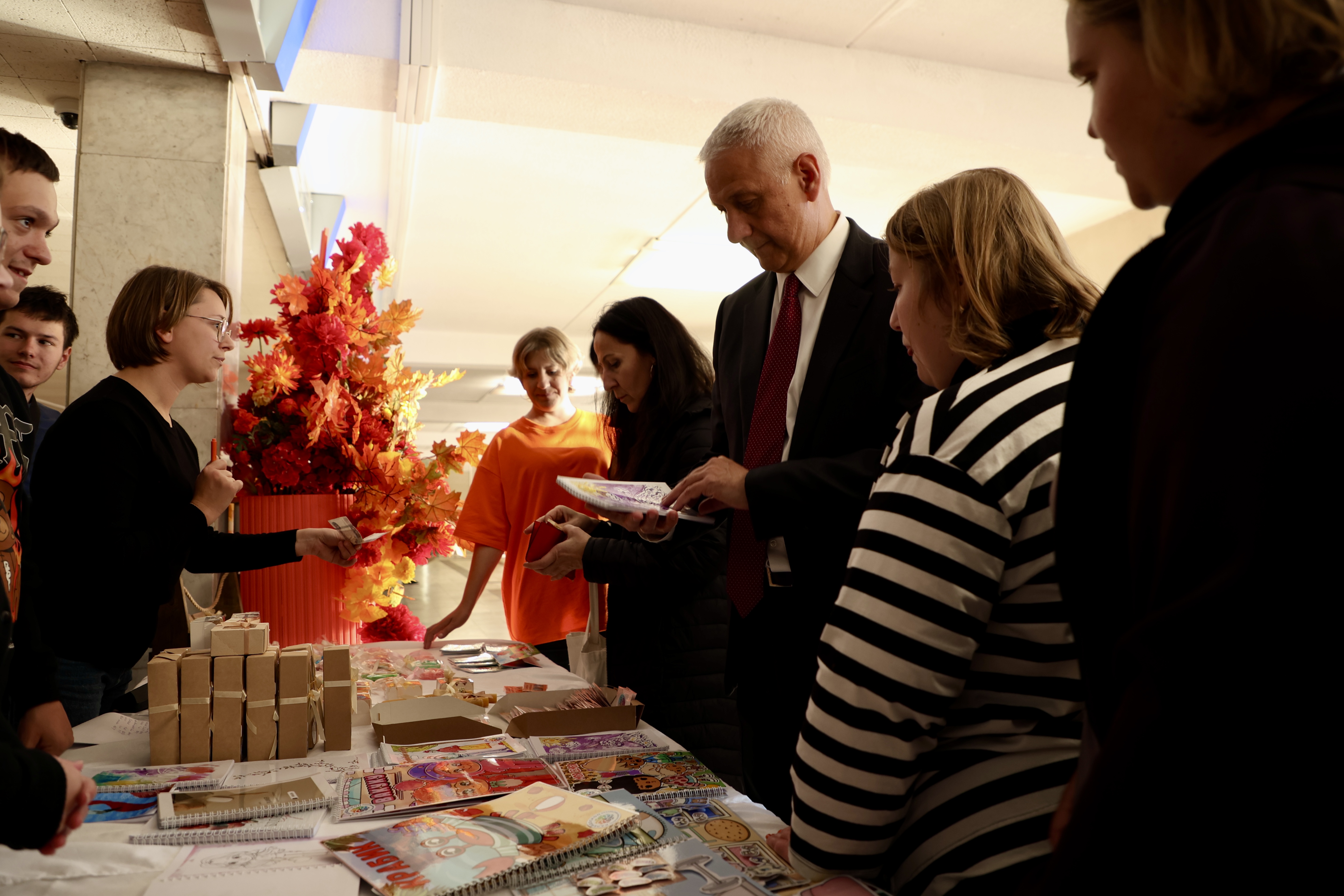 После официальной части праздник продолжился концертом от творческих коллективов Дворца культуры металлургов. А в это время почетные гости посетили ярмарку благотворительного фонда «Металлург» под названием «Калейдоскоп», где были представлены изделия ручной работы: мыло, книги и свечи, сделанные подопечными фонда.