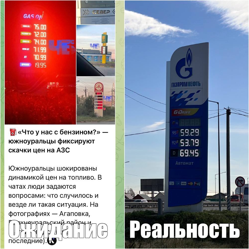 Тут один телеграм канал из-за рубежа распространяет снимки с «ростом цен» на АЗС в Челябинской области. На фото — неизвестные заправки в Агаповке, Верхнеуральске и Магнитогорске.
