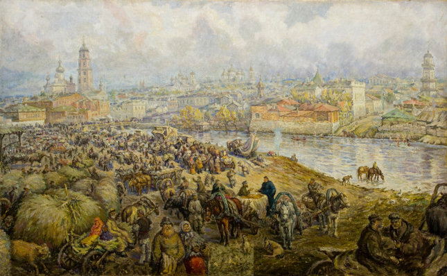 Сенной базар летом в старом Челябинске. Игнатий Вандышев. 1946 год. ГИМЮУ