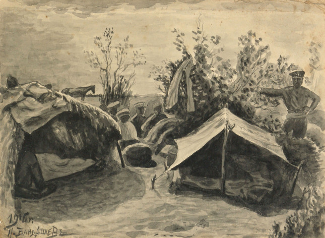 Игнатий Вандышев хотел учиться, но такой возможности у него не было, и он последовал совету академика: стал много и усердно рисовать, даже на войне… Казак по рождению, с началом Первой мировой войны отправился на фронт, служил писарем 10-го казачьего полка Оренбургского казачьего войска. Свои письма домой он сопровождал рисунками военного быта, жителей и жилищ Галиции, Молдавии, Румынии, у него родились целые циклы «Типы 10-го полка», «Типы Волынской губернии».
