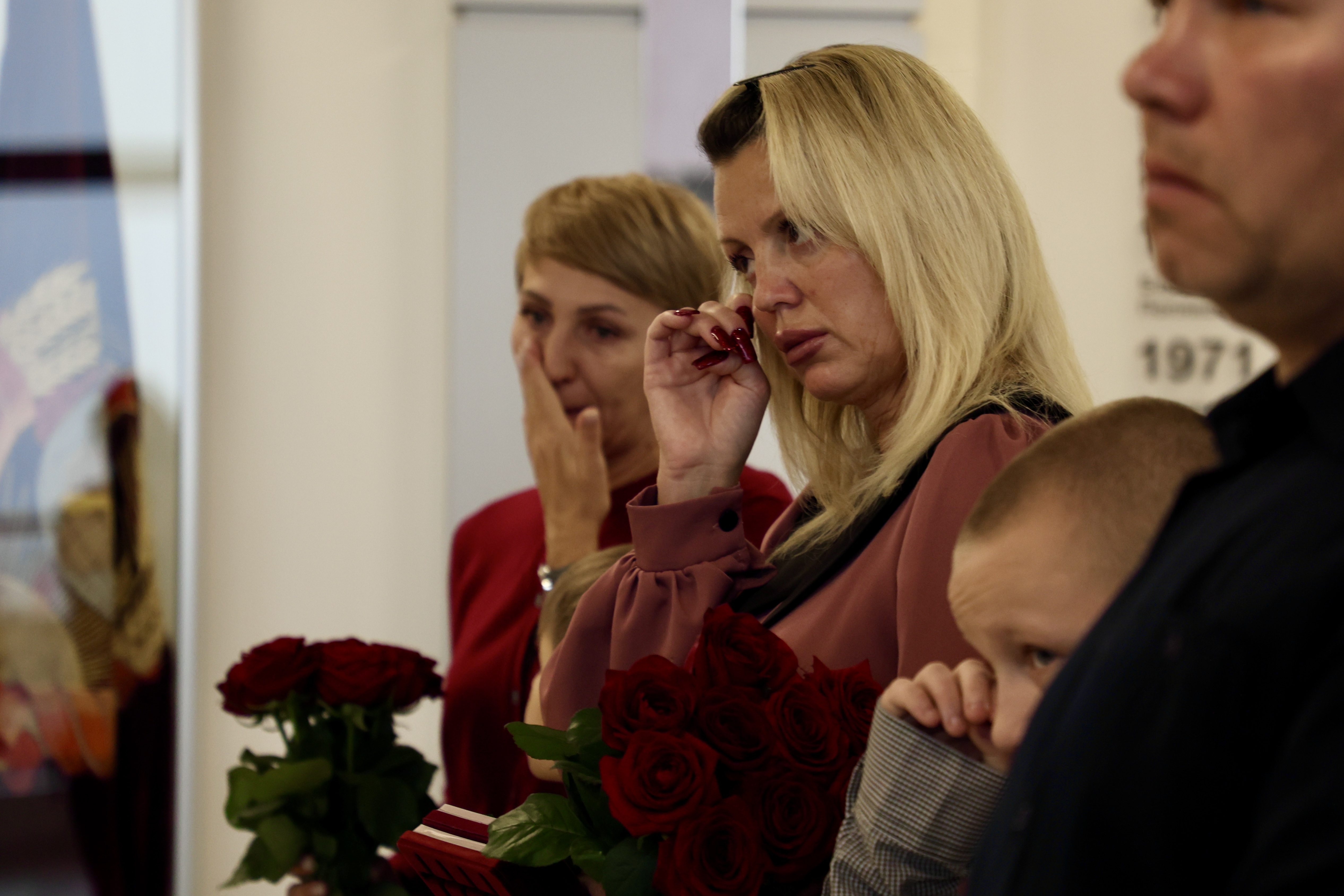 Вручая награды родителям, женам и детям погибших героев, Максим Москалев подчеркнул, что этот день со смешанным чувством гордости и скорби напоминает о подвиге павших бойцов: