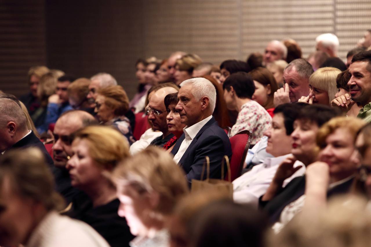 Праздничная программа для сотрудников школы включала в себя не только официальные речи и концертные номера, но и церемонии награждения. Сергей Николаевич лично вручил педагогам высокие награды: медаль и удостоверение «Почетный работник сферы образования России», Почетную грамоту Министерства просвещения РФ и Почетные грамоты главы города.