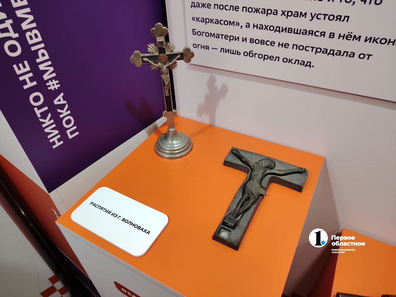 Гости видят и распятия из храма в Волновахе, который ВСУ специально подожгли. Каркас церкви уцелел, как и икона Богоматери. Волноваха — подшефная территория Челябинской области, и Южный Урал уже многое сделал для восстановления мирной жизни.