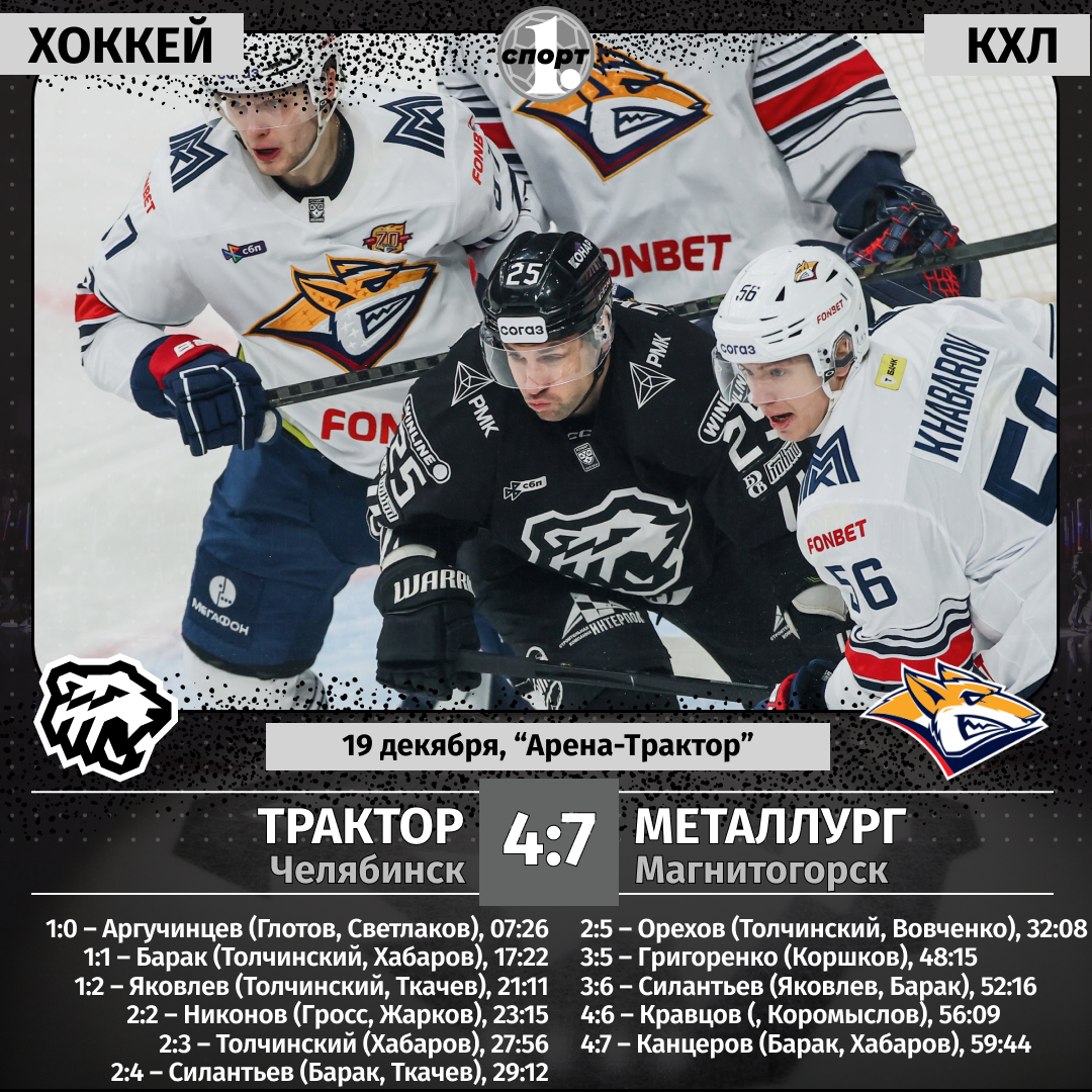 Хоккей. Сезон-2025/2026. Чемпионат КХЛ. 19 декабря. Трактор (Челябинск) Металлург (Магнитогорск) 4:7 (1:1, 1:4, 2:2).