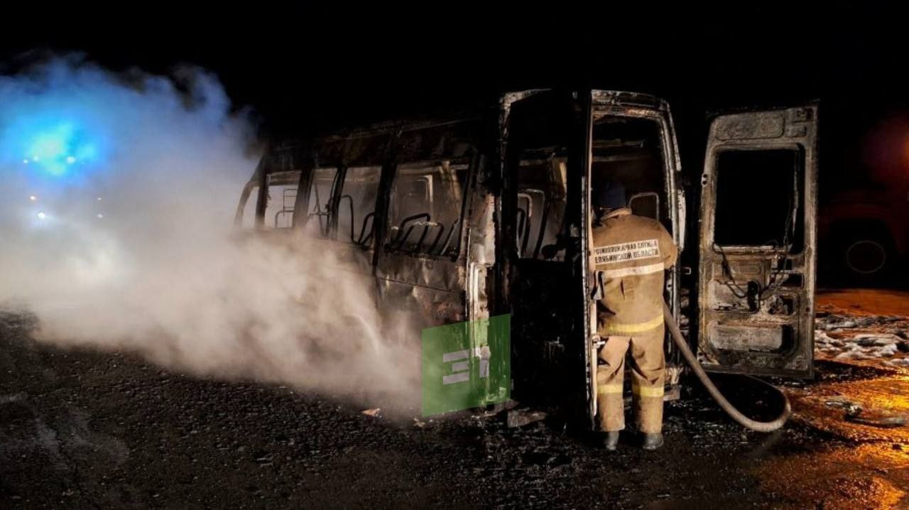 Маршрутка ехала ночью из Магнитогорска в Челябинск. Во время движения вспыхнули моторный отсек и салон. Водитель сразу остановился, шестеро пассажиров успели выбежать. Пострадавших нет. Пассажиров отправили на другом автобусе.