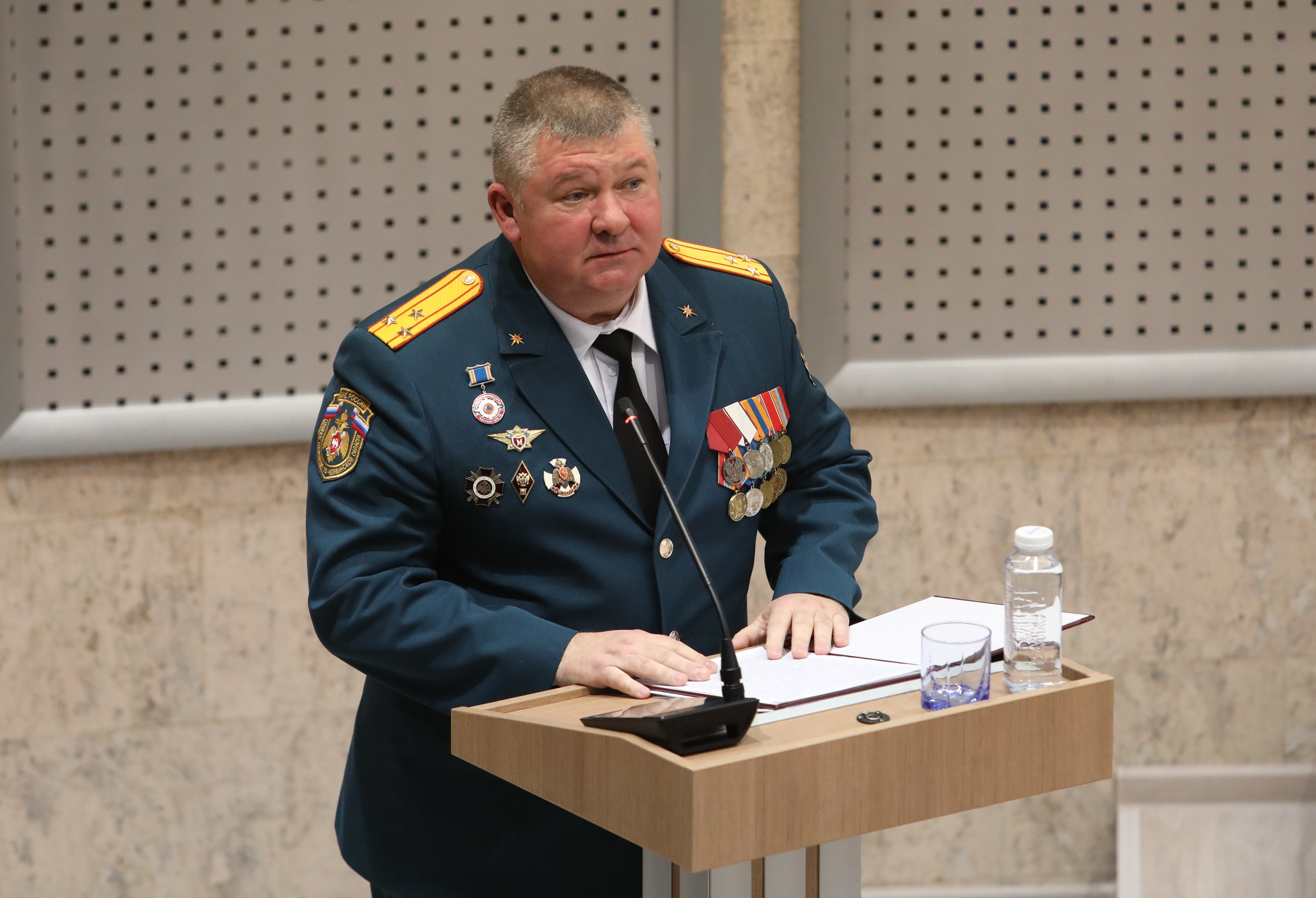 В ответ от МЧС выступил начальник Магнитогорского пожарно-спасательного гарнизона, полковник внутренней службы Дмитрий Лебедев. В своем выступлении он обратился с теплыми словами к своим подчиненным и ветеранам службы.
