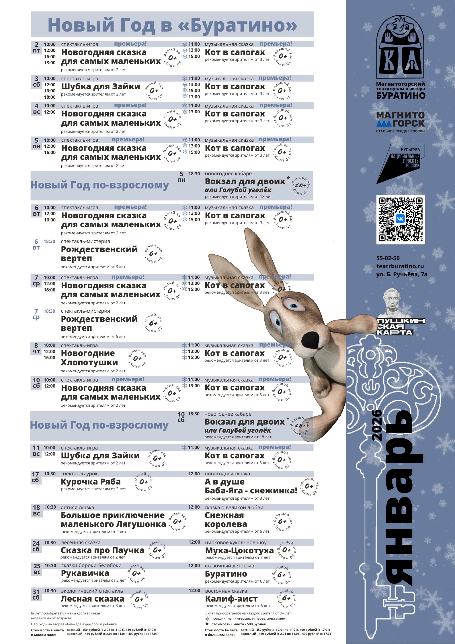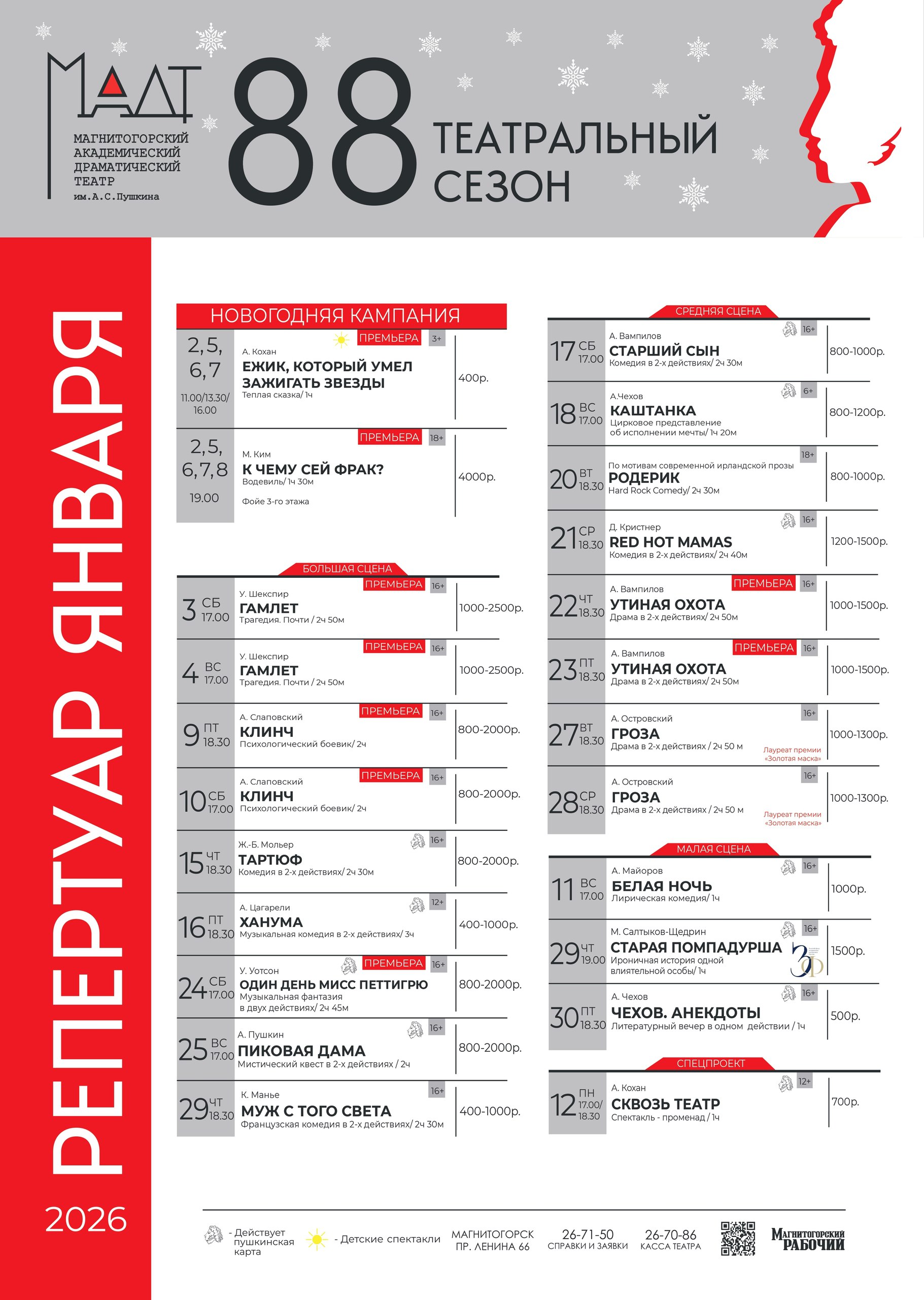 Репертуары театров города на январь.