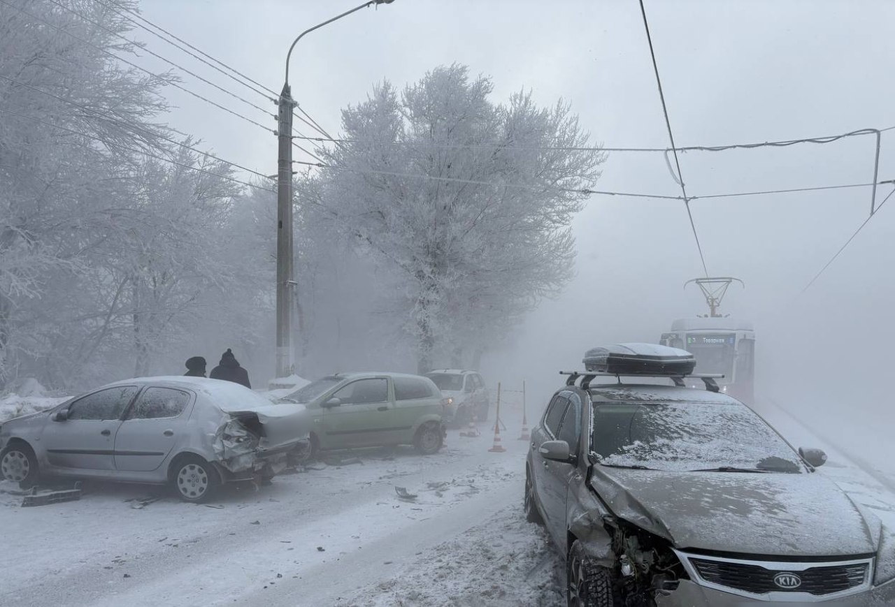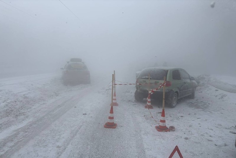 Пять автомобилей столкнулись в густом тумане в Магнитогорске