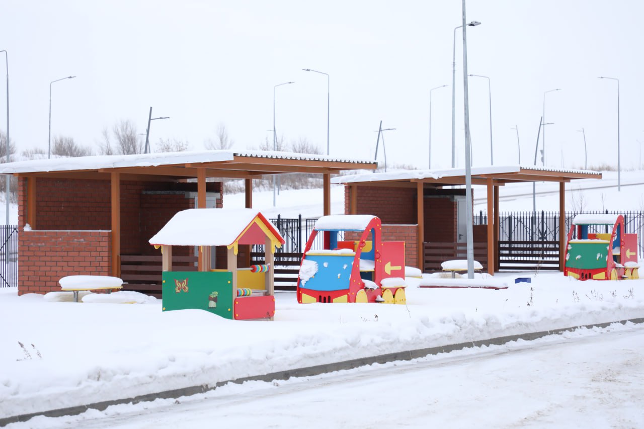 Двухэтажное здание рассчитано на 230 мест, в нем будет работать 12 групп, включая ясельные, спелеокамера, кабинеты логопеда и психолога. На территории детского сада есть футбольное поле и спортивные площадки.