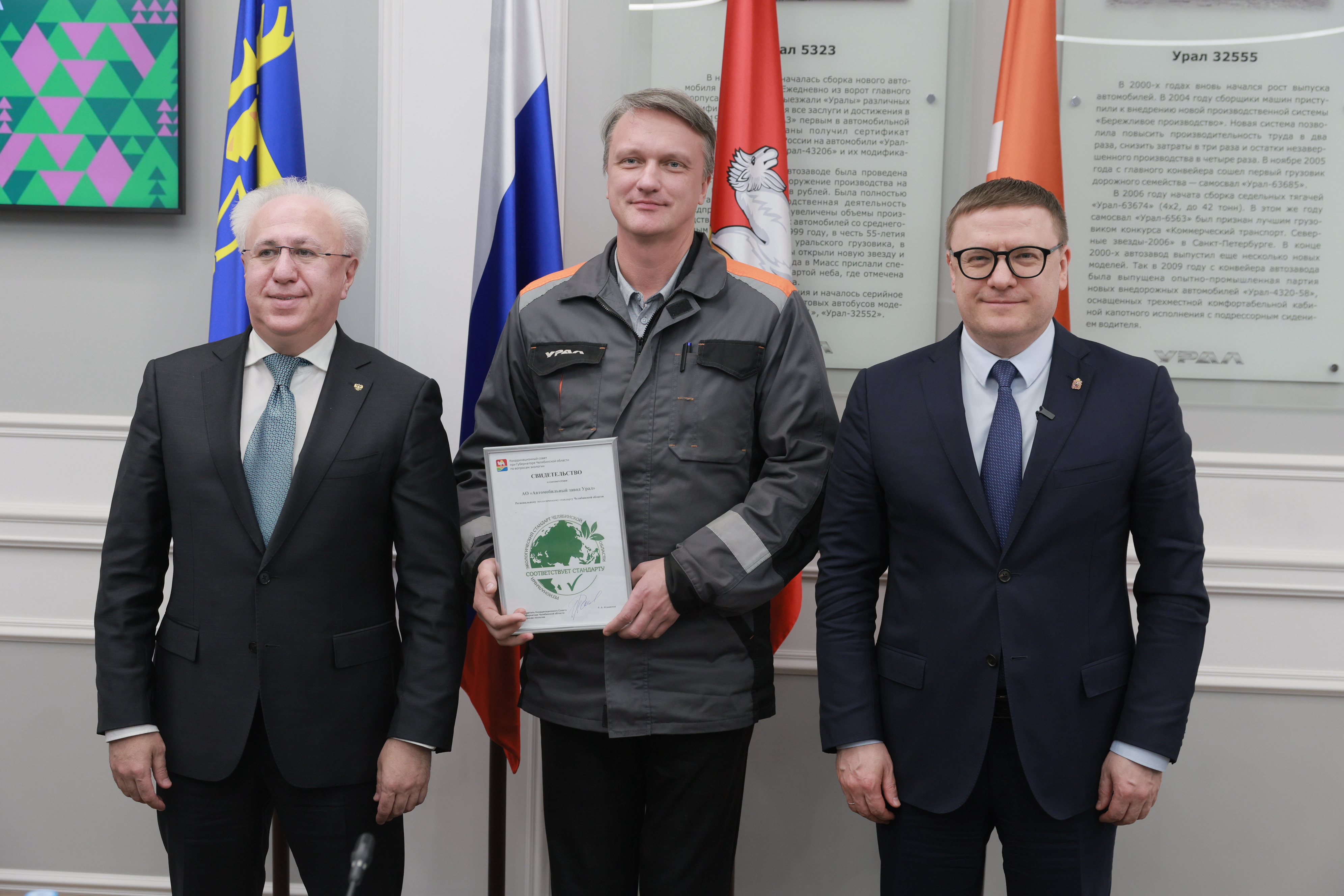 В завершение заседания Алексей Текслер вручил Знак соответствия Экологическому стандарту техническому директору АО «Автомобильный завод «УРАЛ» Алексею Патрашкину. Знак присоединения к стандарту был вручен директору Южно-Уральского федерального научного центра минералогии и геоэкологии УрО РАН Валерию Удачину.
