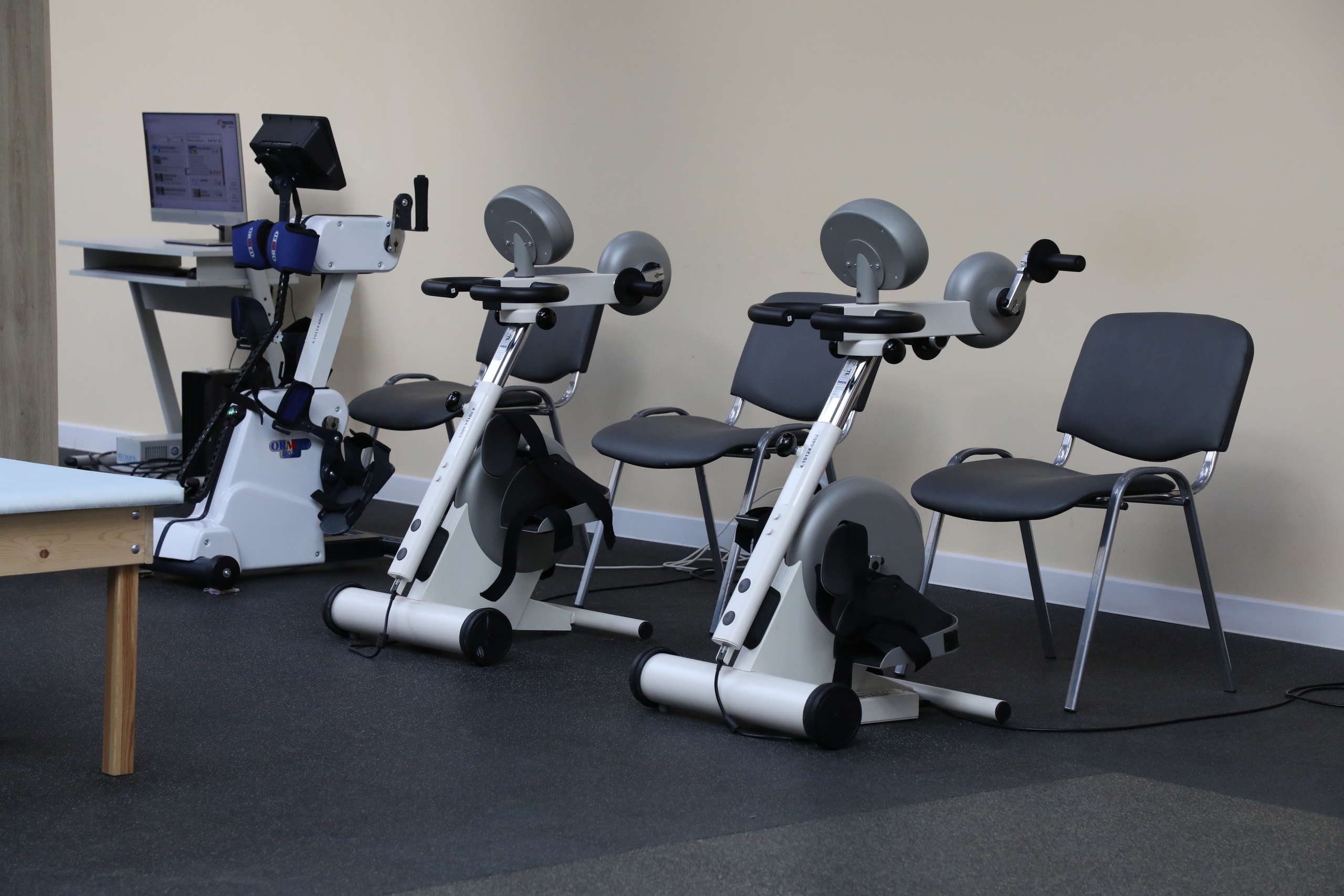 В распоряжении врачей — более 30 единиц современного оборудования. Среди уникальных аппаратов — активно-пассивный вертикализатор с системой биологической обратной связи для пациентов с повреждением позвоночника, циклические велоэргометры и роботизированный комплекс ExoAtlet, который буквально ставит больных на ноги.