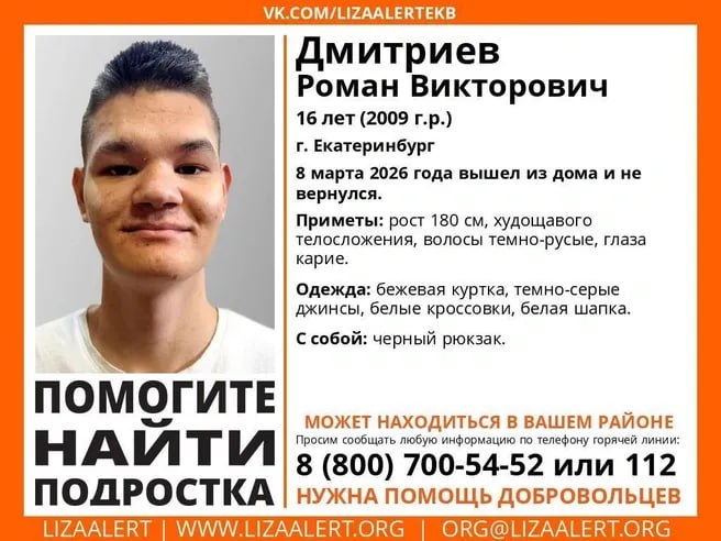 Ориентировка на Романа Дмитриева появилась в соцсетях 8 марта. В тот день он вышел из дома и не вернулся. Парень мог воспользоваться сервисом по поиску попутчиков и уехать в Магнитогорск, оттуда – в Белорецк, Башкортостан.