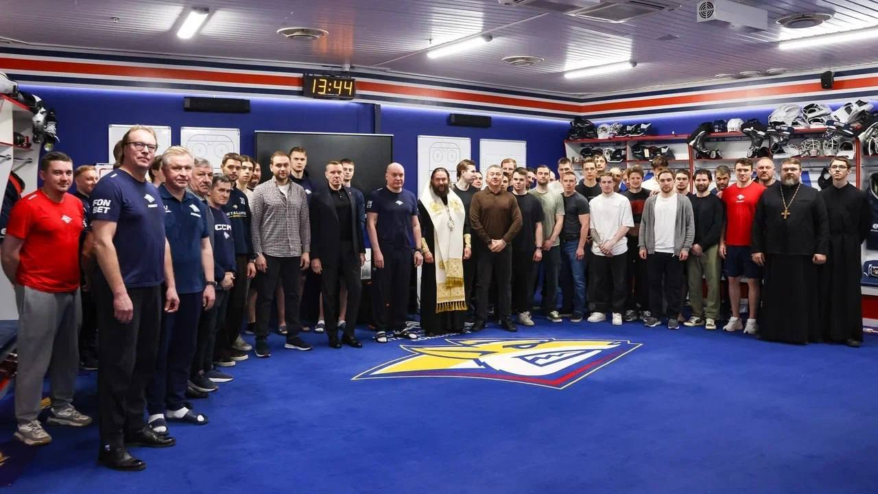 Епископ Зосима обратился к хоккеистам с напутственным словом, в котором «выразил пожелания неустанной работы над собой для достижения результатов». В завершение молебна священник окропил спортсменов и подтрибунные помещения хоккейной арены святой водой.
