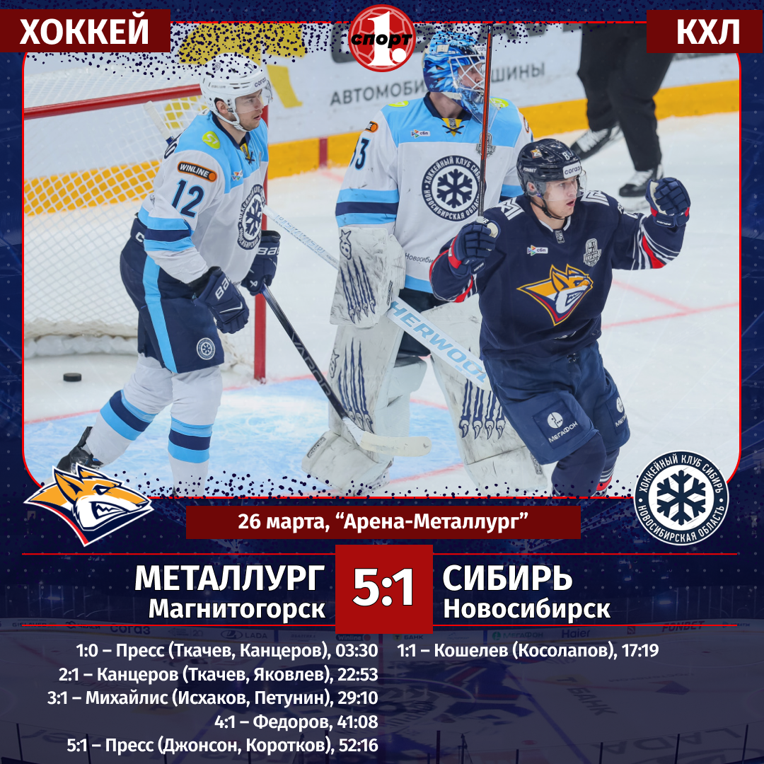 26 марта. «Металлург» (Магнитогорск) — «Сибирь» (Новосибирск) — 5:1 (1:1, 2:0, 2:0).