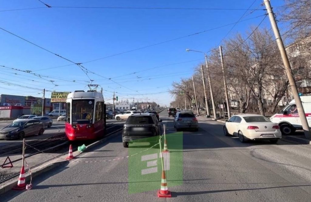 Вагон задел двух человек, которые перешли половину дороги. Они упали на проезжую часть, где им ещё досталось от кроссовера.