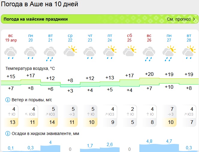 По информации Челябинского ЦГМС, днем 19 апреля на Южном Урале будет от +12 до +17 градусов и облачно с прояснениями. В северной части региона вероятны осадки, как уточнили синоптики, «преимущественно в виде дождя». Примечательно, что по данным Уральского УГМС, в соседней Свердловской области сегодня ждут снег – местами сильный и очень сильный, а местами переходящий в мокрый снег. Днем в некоторых районах будет даже до -3 градусов.