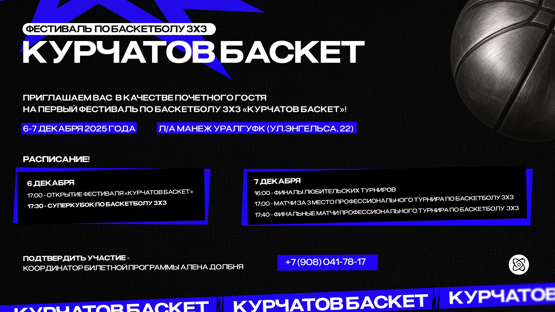 Фестиваль «Курчатов Баскет» состоится 6—7 декабря в челябинском УСК УралГУФК (ул. Энгельса, 22). Ранее мы рассказывали о том, какие команды выступят в Суперкубке России по баскетболу 3?3.