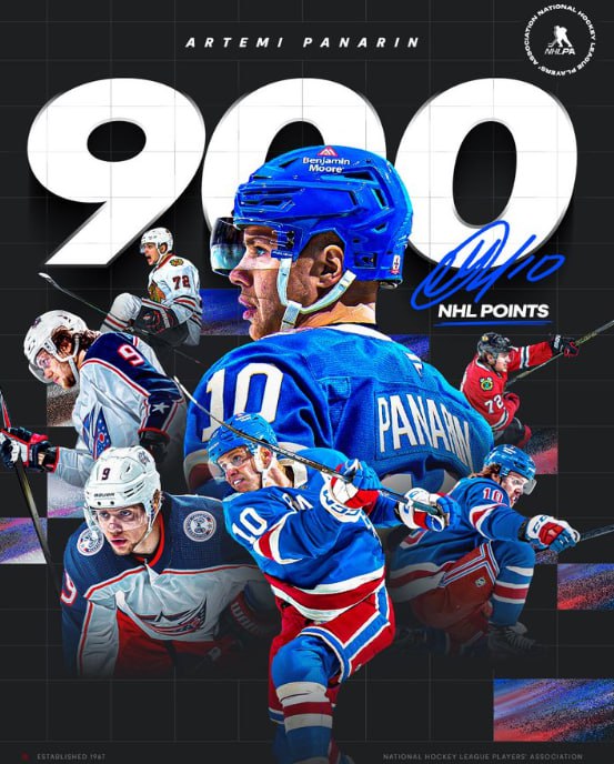 Артемий Панарин стал восьмым российским хоккеистом в истории, которому удалось набрать 900 очков в чемпионатах НХЛ. Ранее это достижение покорилось Александру Овечкину (1652 очка), Евгению Малкину (1375), Сергею Федорову (1179), Александру Могильному (1032), Алексею Ковалеву (1029), Никите Кучерову (1028) и Павлу Дацюку (918).