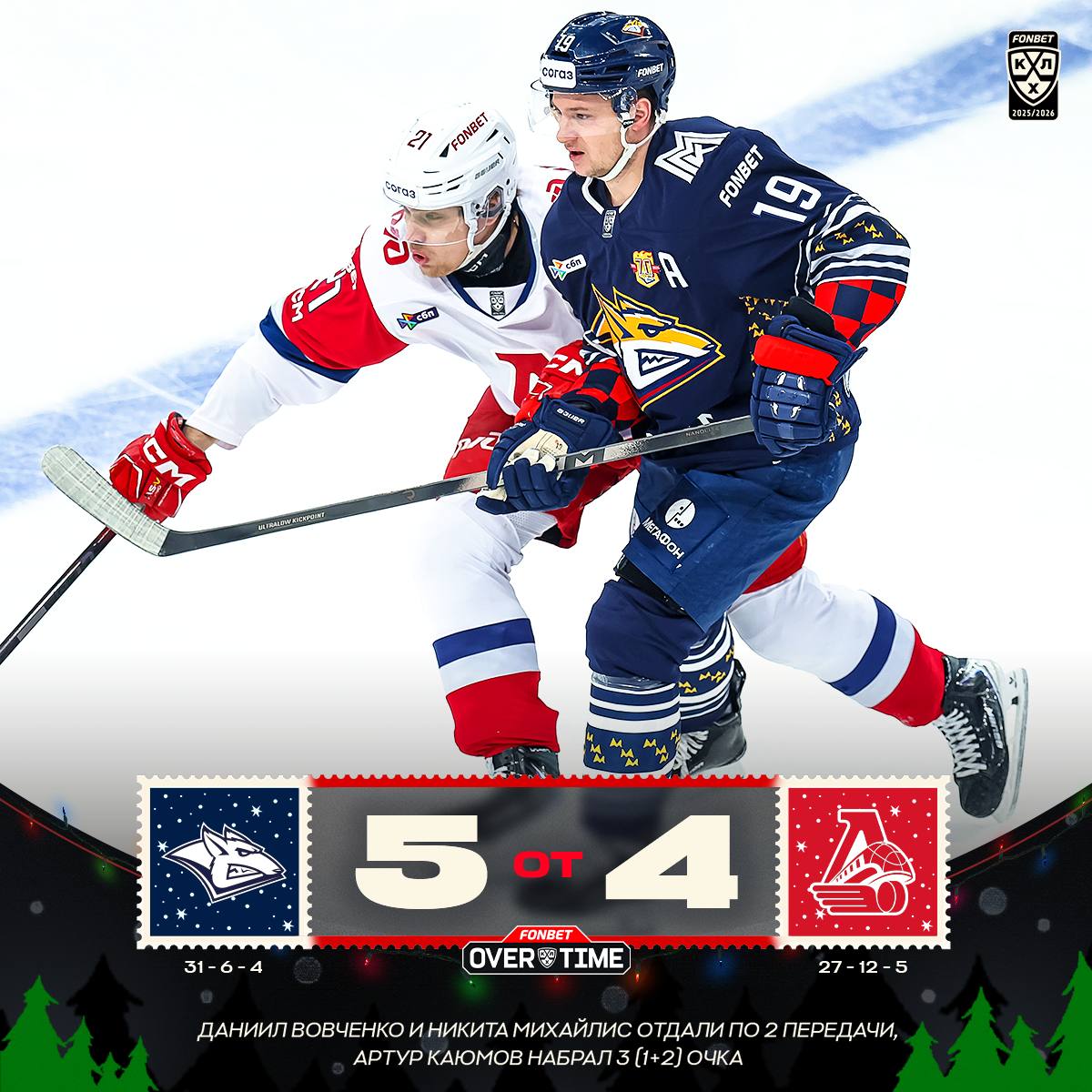 У «Металлурга» отличились Люк Джонсон (26), Андрей Козлов (46), Дмитрий Силантьев (50), Макар Хабаров (56) и Валерий Орехов (65).