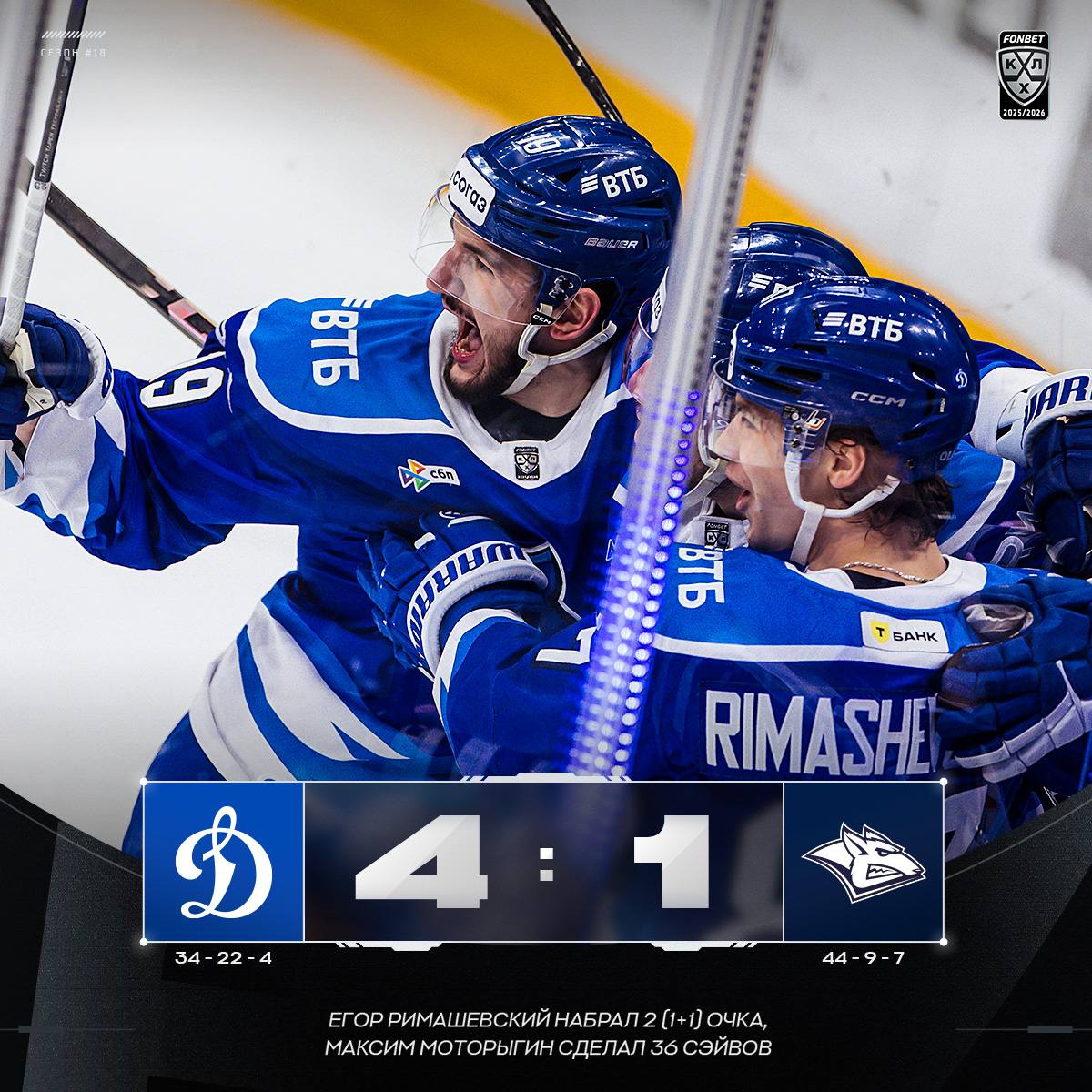 У «Динамо» отличились Егор Римашевский (13-я минута), Максим Комтуа (28), Антон Слепышев (48) и Ансель Галимов (60). Даниил Пыленков сделал голевую передачу и набрал 46-е очко в регулярном чемпионате, побив клубный рекорд для защитников, принадлежавший Бреннану Менеллу.