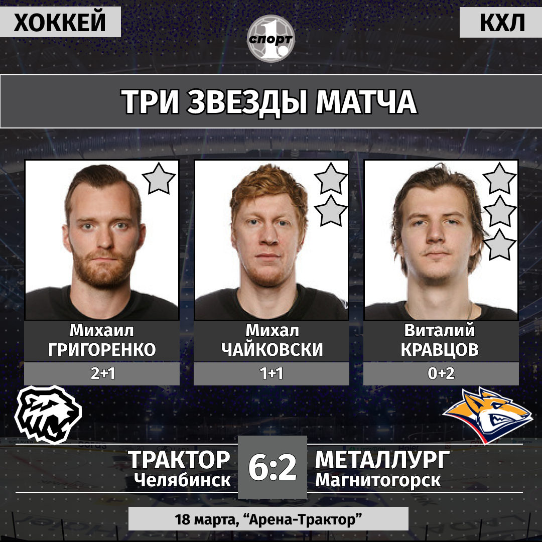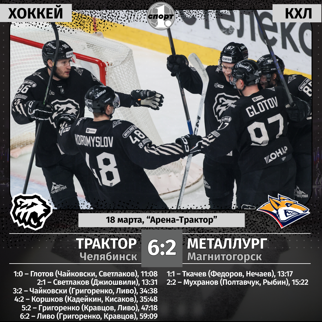 Хоккей. Сезон-2025/2026. Чемпионат КХЛ. 18 марта. «Трактор» (Челябинск) — «Металлург» (Магнитогорск) — 6:2 (2:2, 2:0, 2:0).
